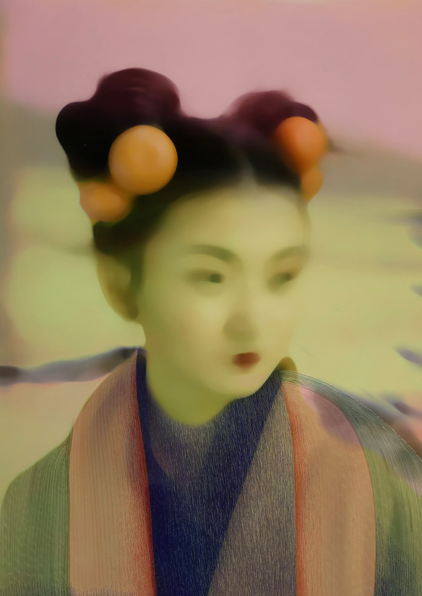 Mandarin pastells, Håndkolorert trykk med tørpastell